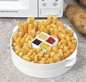 But now, online retailer Harriet Carter has a kitchen gadget that claims to result in microwaved fries that taste like the Fast Food variety. The secret, evidently, is that this Microwave French Fry Maker keeps each fry separate from the others and standing vertically, which allows moisture to run off.