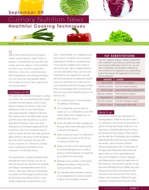 Want to find some easy ways to curb your salt intake, and cut back on fat in your diet, too? Then you should check out this month’s issue of ‘Culinary Nutrition News,’ provided by the American Culinary Federation (ACF) Chef & Child Foundation and Clemson University.