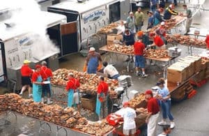 3000 people, 478 bushels of crabs, 3400 ears of corn, 130 gallons of crab soup, 1800 hot dogs, 150 pounds of beef barbecue, hundreds of gallons of soft drinks and beer. The hot dogs and barbecue are all donated by Adam’s Ribs.