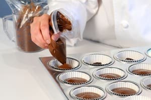 | Continue filling each cup with batter to 2/3 full. Bake mini cupcakes for 16 – 18 minutes and standard cupcakes for 24 – 26 minutes or until toothpick inserted in cupcakes comes out clean. Cool completely. | ![]() |