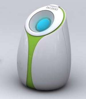 It uses vacuum ionization and allows for composting to be done in a bacteria and odor free container. You can even monitor the progress through a series of blue, green and red lights that alert you when the Pod needs to be emptied.