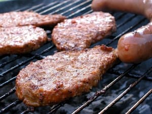 As you take the cooked meats off the grill, be sure to place them on a clean plate or platter, NOT on the unwashed dish that held them when they were raw. The juices left on the plate from the raw meats can cross-contaminate cooked foods.