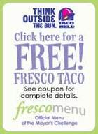 The two leaders were joined by local Taco Bell franchisees at a local OK City Taco Bell, where they ate Fresco Ranchero Chicken Soft Tacos and Fresco Steak Soft Tacos, and unveiled marketing plans and point-of-purchase materials that will be displayed in Oklahoma City Taco Bell restaurants. Creed also announced that Taco Bell will reward residents of Oklahoma City with a free Fresco Beef Crunchy Taco when the OKC Million Challenge loses a total of 100,000 pounds, or 10 percent of its goal. Details of the free taco offer will be announced once this goal has been reached.