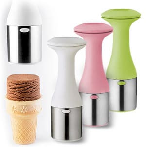 This unusual scoop from Wrapables gives you cylindrical blocks instead of the traditional curved scoop. Build your own stacks for a triple dip like you’ve never seen before! Said to be an ergonomic tool that “cuts through the hardest ice cream with a simple twist-and-lift action.”