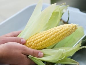 Peel back the husk from the ears and remove the corn silk and discard.