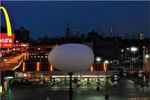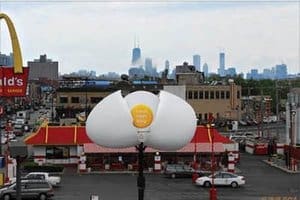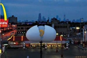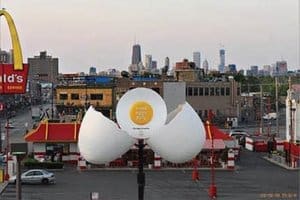 Chicago ad agency Leo Burnett has created ingenious signage for a local McDonald’s (across from Wrigley Field), which dramatically heralds the opening and closing of the restaurant’s breakfast hours.