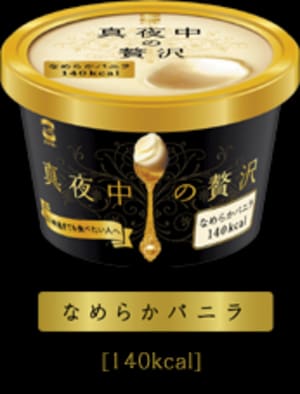 The product is based on consumer research that showed high numbers of Japanese women eat ice cream after 9 p.m. Morinaga/Eskimo test-launched Mayonaka no Zeitaku in a test market, and then took it national in an attempt to unseat country-favorite Hagen Daz.