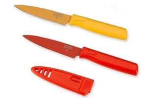 Kuhn Rikon Paring Knives have a non-stick blade for easy slicing and a plastic sheath for safe storage. We love the bright colors! Only $9.95 at Sur la Table.