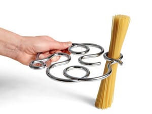 I love this piece of equipment because it measures out perfect portions. It shows clearly the trend toward making our machines work for us – it’s a piece of multi-purposing equipment which can be used to measure the pasta and then be placed on the table as a trivet as well!