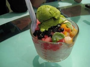We’ve sampled shaved ice everywhere from roadside stands to Matsumoto’s in Hawaii, but now there’s a new brand out of Korea. According to www.bbqchickenrobot.com, this version is like “a glass of fresh fruit: kiwi, mango, lychee, and watermelon on a bed of ice, topped with a scoop of rich green tea ice cream and graced with a sprinkling of perfectly chewy tapioca.” The recommended cool place to get this is actually at Cafe Java Bru in Buena Park.