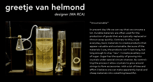 It’s a sweet story: This jewelery is spectacular, and made out of sugar. Using a natural substance and growing it into a usable, wearable piece of art is what we call Green Echo, because it echoes a natural environment. So, your sweetie can’t afford diamonds. Who cares, with this fun version of a rock.