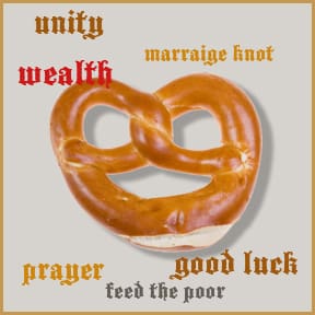 â‹… Pretzels were once part of the wedding ceremony. Couples wished upon the pretzel and broke it like a wishbone, then ate it to symbolize their unity.