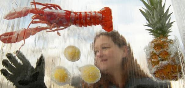 Frozen in the great wall for all to see are lobsters and carrots, peaches and broccoli, cherries and potatoes. As reported in the London Mail Online, the wall is situated outside of the Royal Festival Hall to promote the new website of the British Frozen Food Federation (BFFF), TheNewIceAge.com.