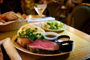 We sampled the tenderloin, which is a large filet mignon serviced with twice baked potato and a salad, and which was just as thick and juicy as promised. Same for the prime rib, offered in a 10 oz. cut, or double that for just a few dollars more.