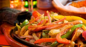 And then there was Paradise Cantina, where Lee told us everything was made fresh throughout the day. He said, “Quality is most important. We’re your home away from home.” In other words, it has to be good. We may not be able to say the same thing about the decor (picture The Food Channel’s Christen Nehmer in a sombrero and you’ll get the picture), but we’ll save that video for the full story! In the meantime, feast your eyes on the fajitas!