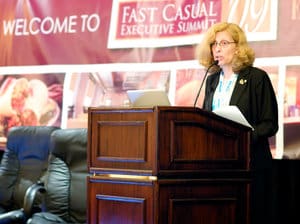 Day two of the Fast Casual Summit began with a breakfast keynote by Au Bon Pain CEO Sue Morelli. In case your French is rusty, the name literally means the ‘place of good bread.’ The company, headquartered in Boston, operates units across the world, with 122 company owned and 55 franchise locations in the U.S., and 59 cafes around the world.