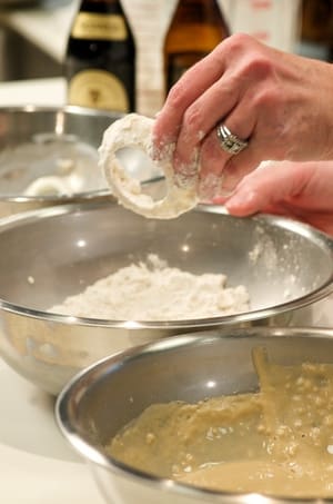 Dredge onions in seasoned flour. Shake excess.