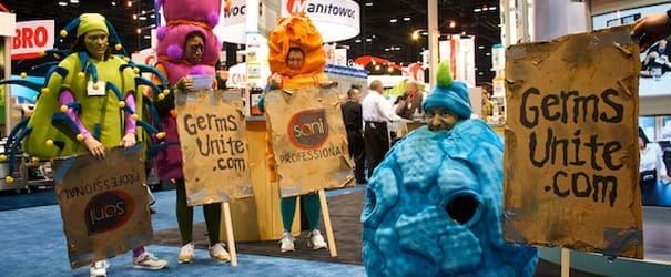 Bonus – We loved the Germs! They were colorful, interactive, and fun. Sure, we know it’s the kid in us, but isn’t that better than being stuffy business people all the time? Not to mention the fact that germs are serious business right now – one outbreak of Swine Flu could easily impact the industry significantly. So we offer a hand-washed and sanitized high five to Sal Monella, Ryan O’Virus, Lizz Teria, Ann Fluenza, and Eli Coli from Sani Professsional. What a creative way to bring a serious message.