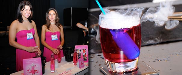 New Looks in Cocktails – The Nuvo Sparkling Liqueur is pink, comes in a bottle that resembles perfume, and is citrus-y and bubbly. It’s just one of the new flavors we saw demonstrated (and it really caught the eye of our mixologist, Chef Dennis Pitchford – at least, we think it was the Liqueur). The industry is also coming up with new tools to make cocktails more fun, like the MistyStix, a product projected to launch in July. (See their video on YouTube, here).