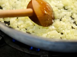 Cook onions until tender and translucent. Reserve.