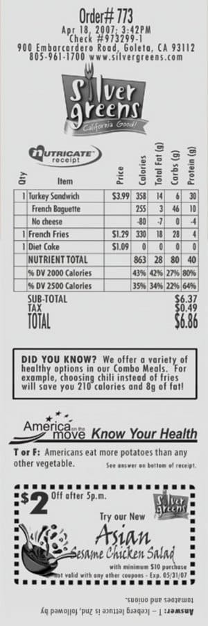 Primarily targeted to the Quick Service Restaurant industry, the Nutricate system is new technology that automatically prints nutritional information about the food items purchased by the customer right on the sales receipt. Jamie Hartford first reported on the system at QSRMagazine.com.