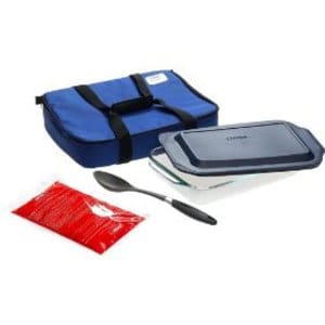 I’m pretty well stocked when it comes to carrying devices, too. I have a nice big picnic basket that has a supply of plastic utensils and paper products stored inside. I have a couple of those zipper holders with casserole dishes inside – including the hot/cold piece that will help keep food at the right temperature during transport. And, I have lots of stackable containers with handles that allow me to take multiple cakes, layers of cupcakes, and more without a lot of hassle.