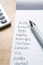 The calculator will help you keep track of your spending as you go. Until you get used to it, divide your list into essential items and start with those, then go back through the store for the non-essential items that fit within your budget.