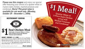 They were trying to do a nice thing. It’s just that a lot of people took them up on their gesture, just as they did with KFC. Boston Market wanted to one up KFC by giving away a full meal—not just a piece of meat. According to the coupon, you could get “your choice of a quarter white or 3-piece dark chicken, mashed potatoes and cornbread.” For $1. What’s more, the coupon could be forwarded to friends.