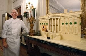 One of the highlights of the White House tour during the holiday season is the Gingerbread White House replica. This year’s model took executive chef Bill Yosses and his staff six weeks to complete. The gingerbread White House, created as seen from the South Portico, is covered with white chocolate, measures 56 by 29 inches and weighs just under 400 pounds. The Obama’s family dog, Bo, appears ready to frolic on the South Lawn.