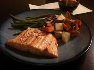 Dinner: Grilled Salmon with roasted potatoes and green beans