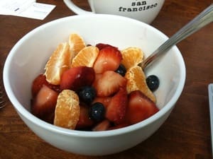 Snack: Bowl of fruit (strawberries, blueberries & oranges)
