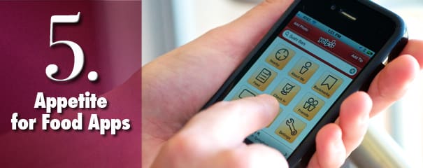 Discount eats add flavor appeal to smart phone food apps. Just as the adorable antics of cats have become the unexpected stars of the Internet, food has become the dominant attraction of smart phones. It seems like there’s a new mobile food app popping up every time you start to feel hungry. You can shake your phone on Urbanspoon to create a slot machine effect that spins neighborhood, cuisine type, and price to help you find a restaurant. VegOut helps you find one with lots of vegetarian choices, and Open Table not only locates restaurant choices using GPS technology, but also lets you know if there are tables currently available.
