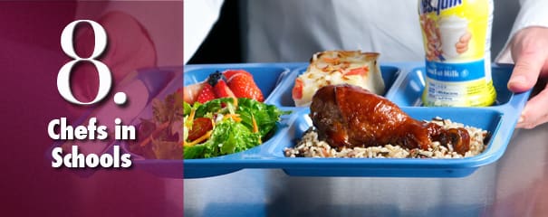 Living up to their pledge, chefs join the cafeteria crews. This will be the year we finally get really serious about feeding our children healthier, better quality foods. We’re no longer just talking about childhood obesity, we’re doing something about it. Jamie Oliver came with TV cameras to the “unhealthiest city in America” and showed what a difference one person can make. In 2011 thousands of chefs will be working with school districts to get better, fresher foods on the kids’ trays.