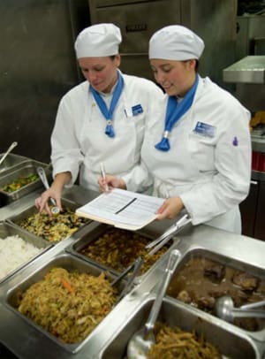 ‘We’re going above and beyond minimum requirements,’ says Susan Wallace, JWU’s executive director of food safety. ‘We’re heightening our students’ awareness about food safety — making it as intuitive as knife skills. Safe food handling and preparation are as important as taste and presentation.’ She points to increasing food recalls and related illnesses facing professionals and consumers. ‘Years ago people ate what was seasonal and local. Today food comes from all over, and many countries don’t mirror our [U.S.] regulations. The quickest way to lose your business is to have a food borne illness associated with your name or your business.’