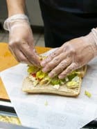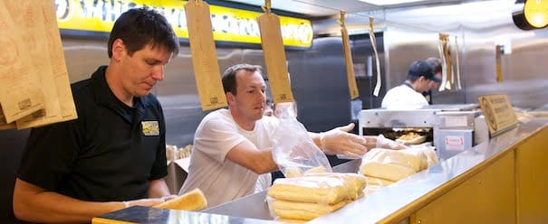 It turns out, pretty quickly. We learned that the average wait time from when the order bag is handed in, to when the hot sandwich comes out bagged and ready to go, is about four minutes. With a crew full working overtime they had those 51 varieties—from breakfast sandwiches, to the Kidswich, to the Italian and the ‘Comforts’ (meatloaf, egg salad, chicken salad, Spam® or Triple Cheese)—expertly made and piled high.