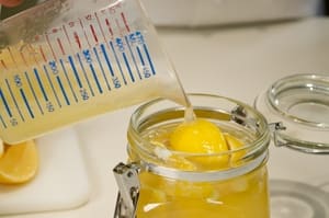 Pour the lemon juice into the jar, leaving 1/2 inch of space at the top. Add a tablespoon of salt.