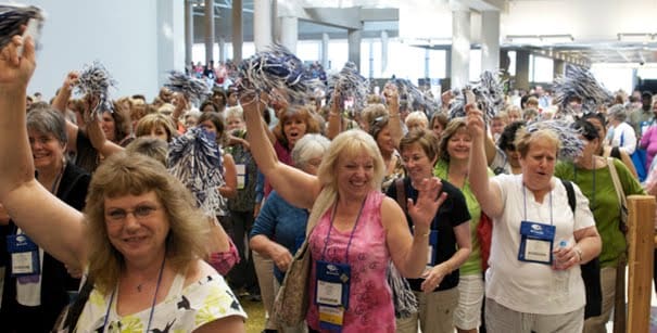 More than 5,000 school nutrition professionals paraded into the Dallas Convention Center Monday as the exhibition hall opened for the School Nutrition Association’s Annual National Conference (ANC). A pep rally led by the Dallas Cowboy Cheerleaders and Cowboys running back Tashard Choice got the crowd fired up to see the latest school foodservice products for the coming school year.
