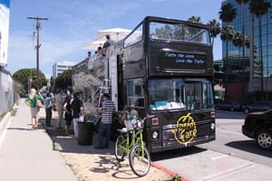 There’s a new, large economy-size mobile food truck hitting the streets of Los Angeles. Make way for the bustaurant. Unlike most of the nomadic gourmet food vehicles which preceded it, this one has dine-in seating—with a view.