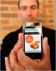 Customers can place their orders via smart phone using The Melt’s website. Users receive a QR code that, once scanned, allows the restaurant to begin processing the order in short order.