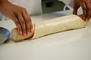 Roll the dough onto the rolling pin starting with the edge farthest away from you.