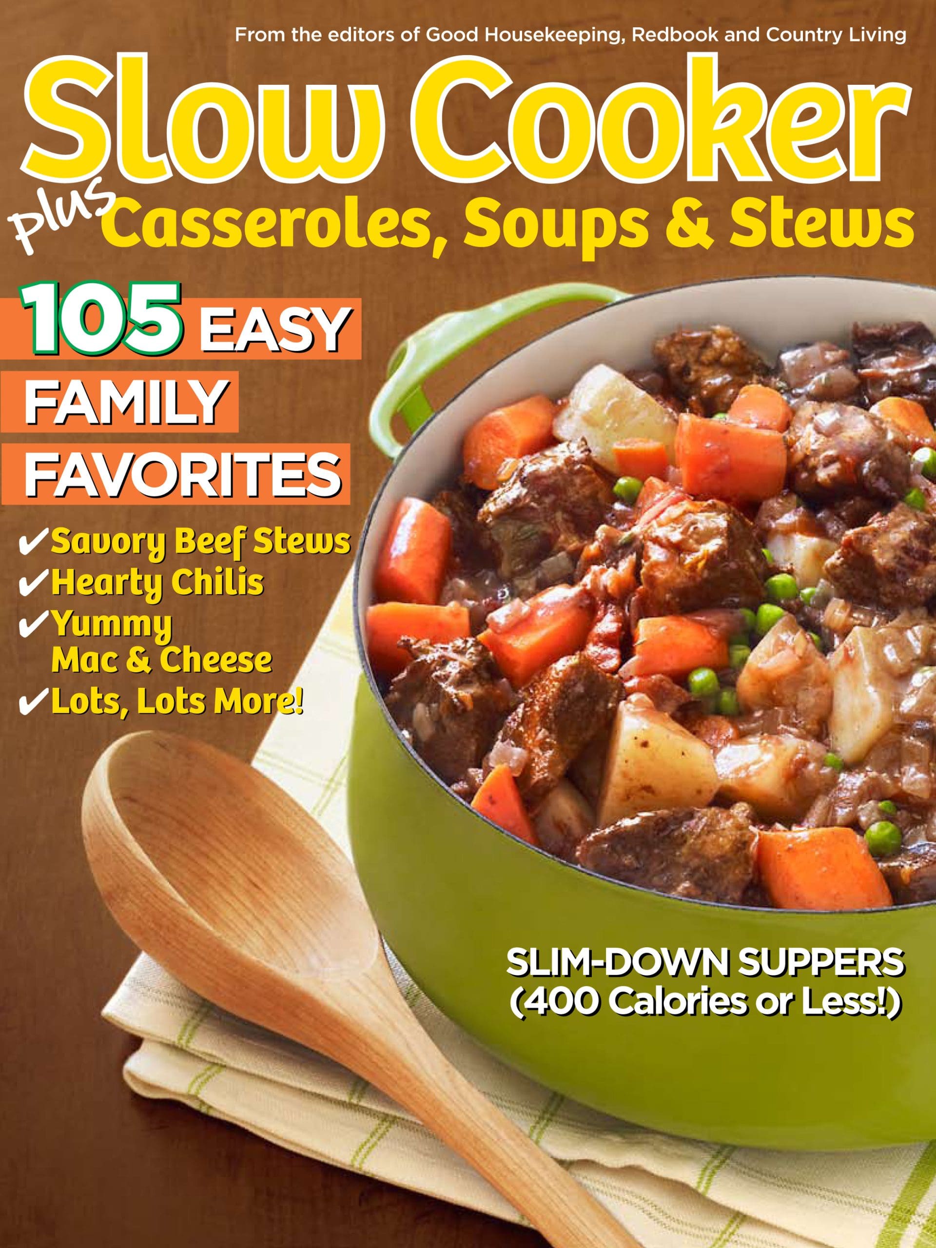 In addition, the bookazine features expert, step-by-step tips on using a slow cooker for effortless homemade meals, with nutrition information and low-calorie options, as well as a guide to the top kitchen equipment for making soups, stews, and casseroles.