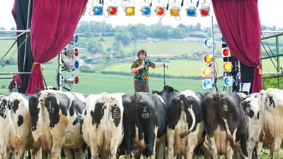 “Most of the herd crowded closely round the stage and jostled for a good position. They had their mouths open and their ears laid back, indicating they were relaxed and content. Not everyone was entertained though — I definitely heard some low heckling moos and there were even a few walk-outs.”