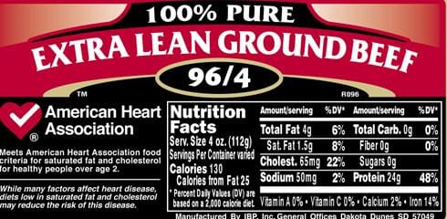 A 4-ounce serving of regular ground beef that is 73% lean meat, for example, contains 350 calories, 270 of them from fat, according to the USDA, making up 60% of the suggested daily intake of saturated fat in a 2,000-calorie diet.