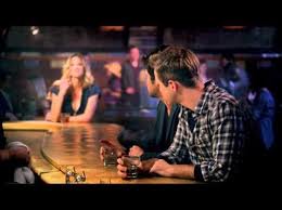 The ad features a lovely young woman seated at the bar being admired by a couple of dudes who are debating whether or not she’d welcome the one guy’s advances. Seemingly she answers “no” with a flip of her middle finger.