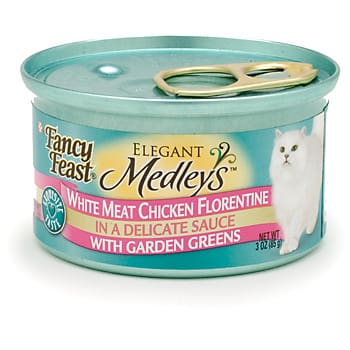 Elegant Medleys, a deluxe offshoot of Purina’s Fancy Feast cat food was introduced in 2006 with flavors like Turkey Florentine. In 2009 the pet food maker came out with a line of cat appetizers such as steamed tilapia and tongol tuna in broth.