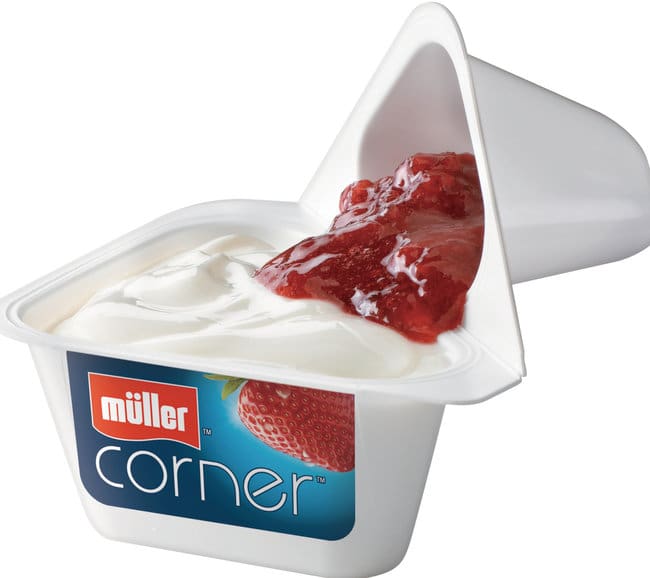 The products will come in square packages with one corner filled with an ingredient the consumer can add to the yogurt by folding the corner or using a spoon. In addition to fruits, such as strawberry and blueberry, other add-on options include caramelized almonds, tiny chocolate-covered crunch balls and granola.