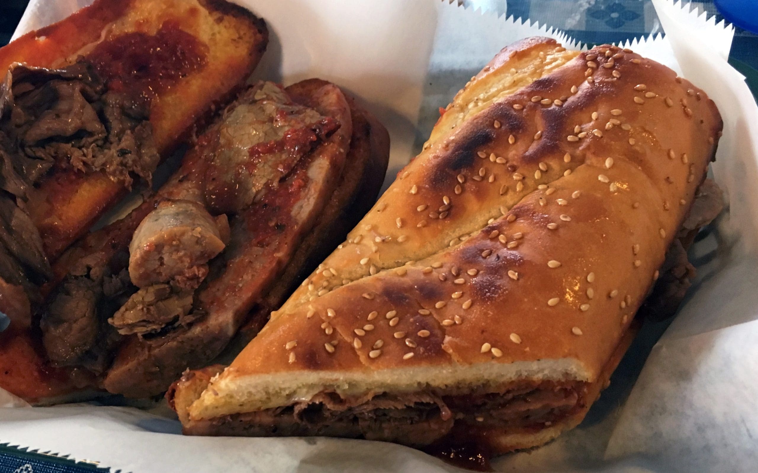 We chose the Nana’s Special, figuring we’d get the best of good Italian style roast beef plus salsiccia (mild Italian sausage). She let us in on a secret—order it with the cheesy garlic bread and you get a wonderful mix of flavors on your sandwich, for just a little extra. It comes with a marinara sauce that tastes like it was just ladled out of an Italian Nana’s kitchen, too.