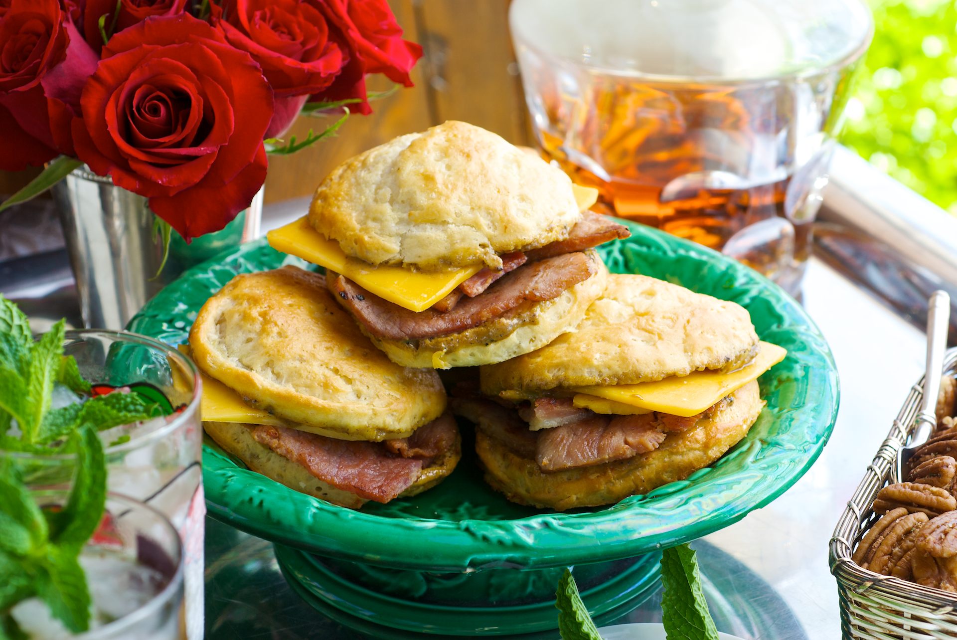 The perfect nosh for a picnic or party, light biscuits get stuffed with ham and Cheddar and smothered in an orange mustard pan sauce. Recipe here.