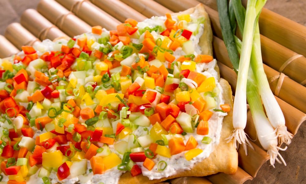 This may not be what you traditionally think of when someone says ‘veggie pizza,’ but this fresh vegetable covered pizza is so refreshing and tasty that you’ll never go back. Click here to get the full recipe.