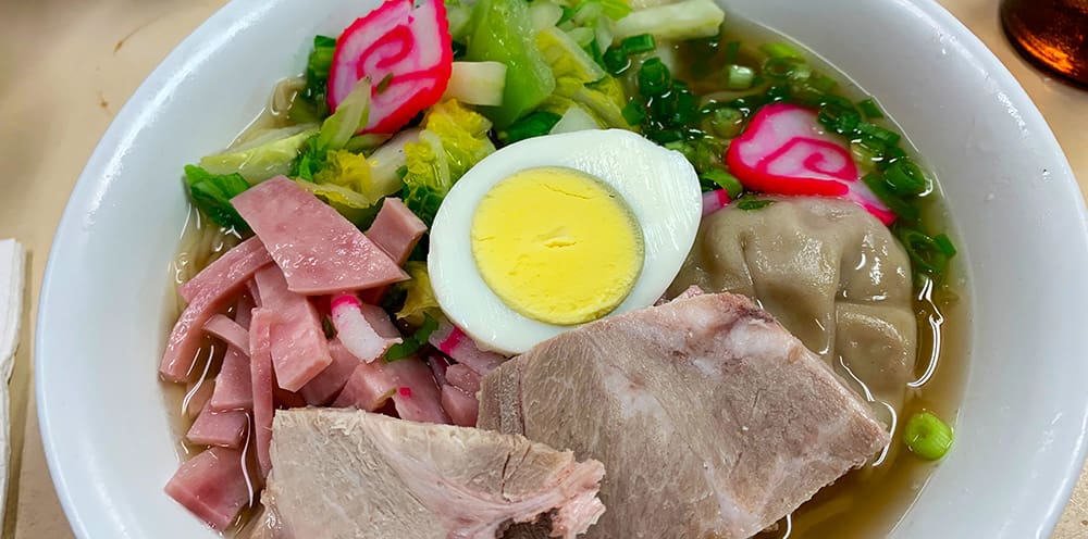 That’s how we felt at Hamura Saimin. It’s not far from the Lihu’e airport, making it convenient whether you are coming or going. We walked into the unprepossessing restaurant, where the line forms at the back of the restaurant against the wall. There’s almost always a line, so don’t worry—you won’t make others feel uncomfortable, nor will they hurry. If anything, they’re thinking, “I have a seat and you don’t!”